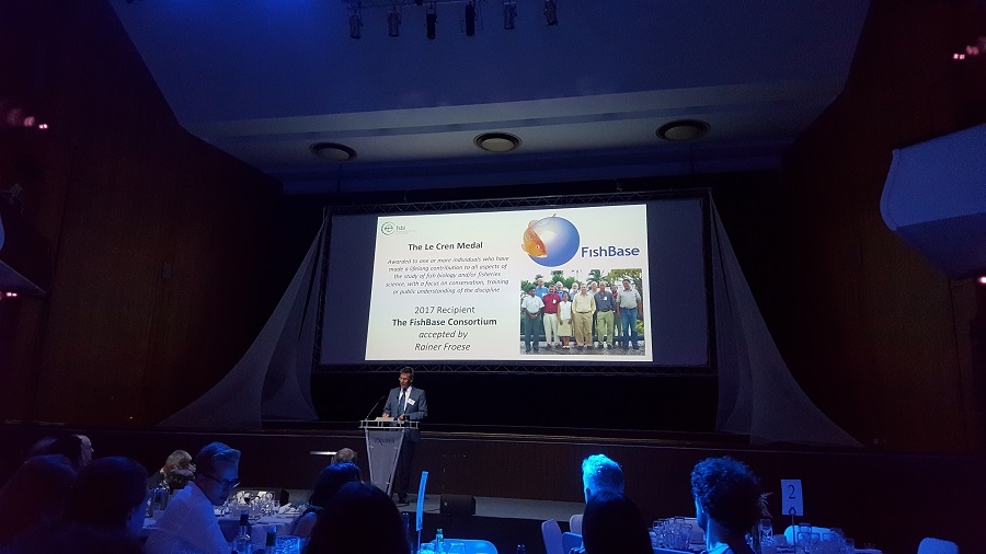 The Fisheries Society of the British Isles awarded the 2017 Le Cren Medal to FishBase for “a lifelong contribution to all aspects of the study of fish biology and/or fisheries science, with a focus on conservation, training or public understanding of the discipline.”